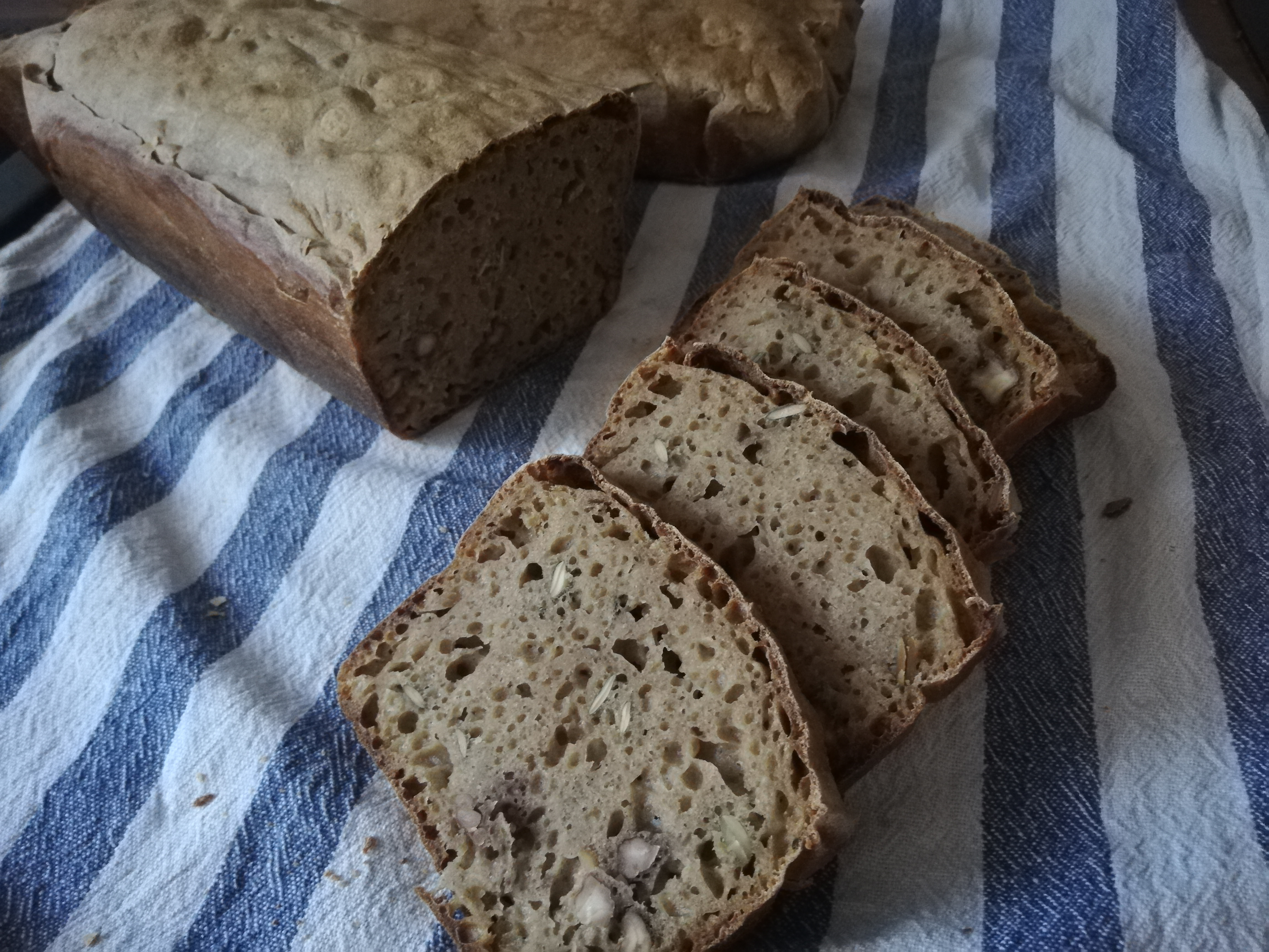 Chleb na serwatce ze słonecznikiem i orzechami.
