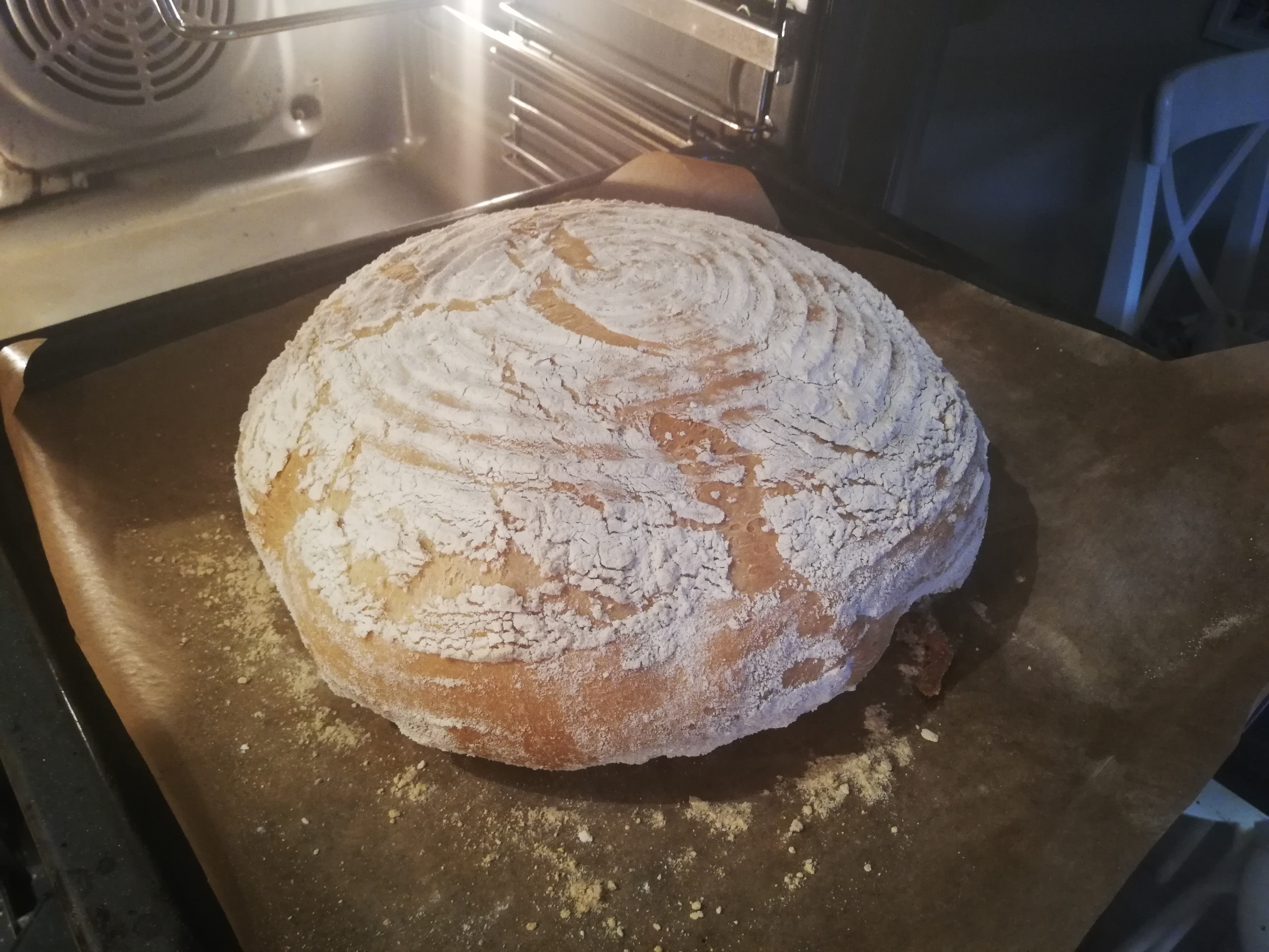 • Piekarnik nagrzewamy do 240 C, wkładamy chleb, obniżamy do 200 C i pieczemy 40 min.
