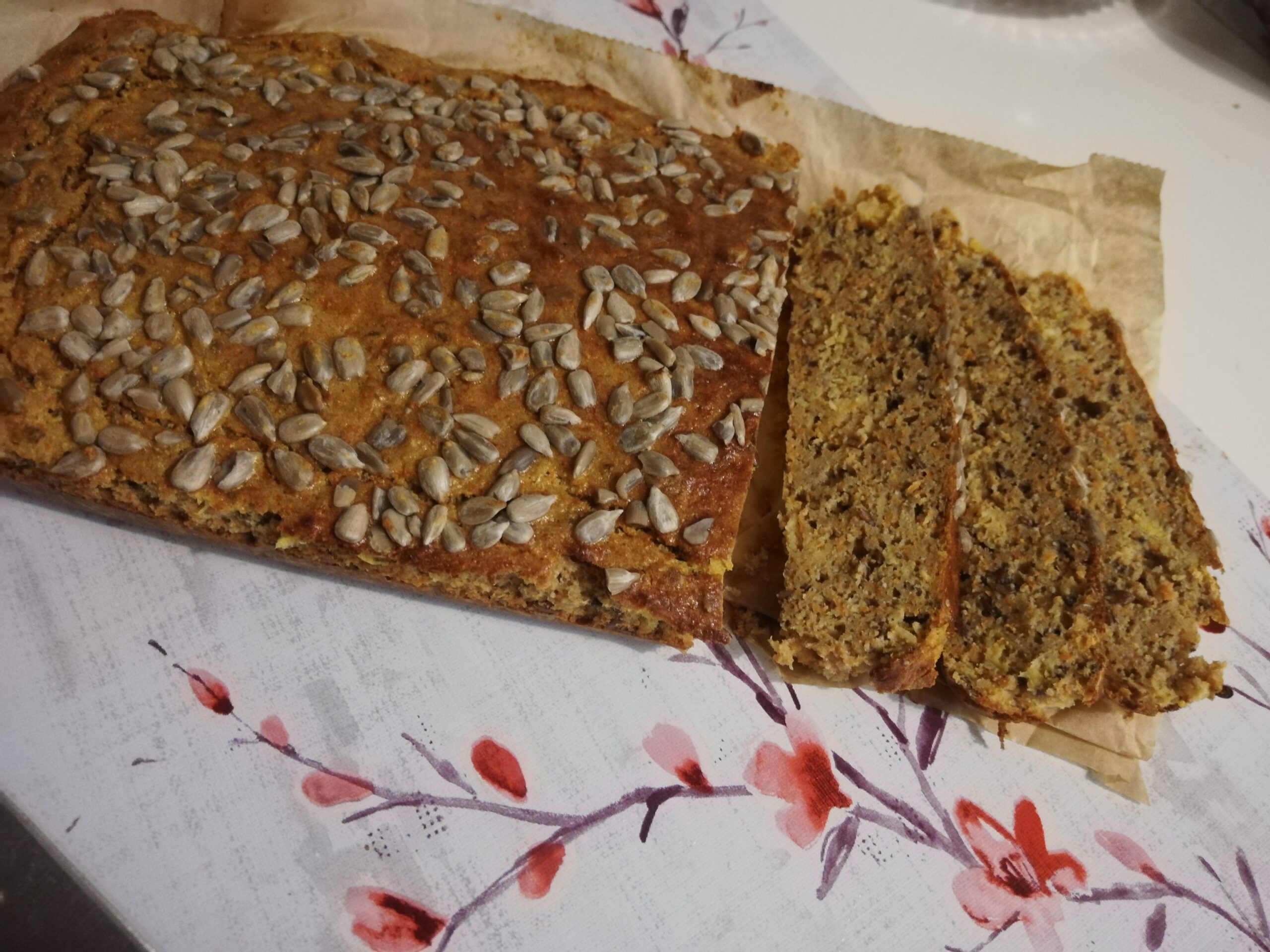 Zdrowy chleb warzywno-gryczany, bezglutenowy, bardzo szybki w przygotowaniu, na bazie warzyw, a raczej mieszanki warzyw, pulpy powstałej po wyciśniętych świeżych sokach, może to być sama marchewka lub dynia lub mieszanka marchewki i pomarańczy czy buraka. Delikatny w smaku, bezglutenowy, bez nabiału i bez cukru…Pyszne smakuje z dodatkami słonymi lub na słodko 🙂