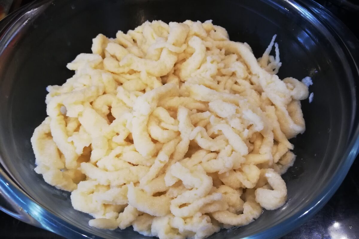 - Gotowe kluski przecedzamy i polewamy zimną wodą.