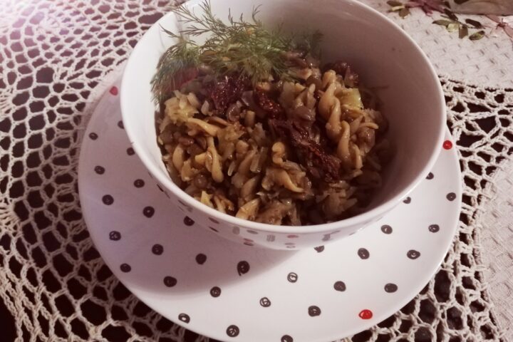 Polecam koniecznie wypróbować Kapustę duszoną z boczniakiem i suszonymi pomidorami… Pycha!