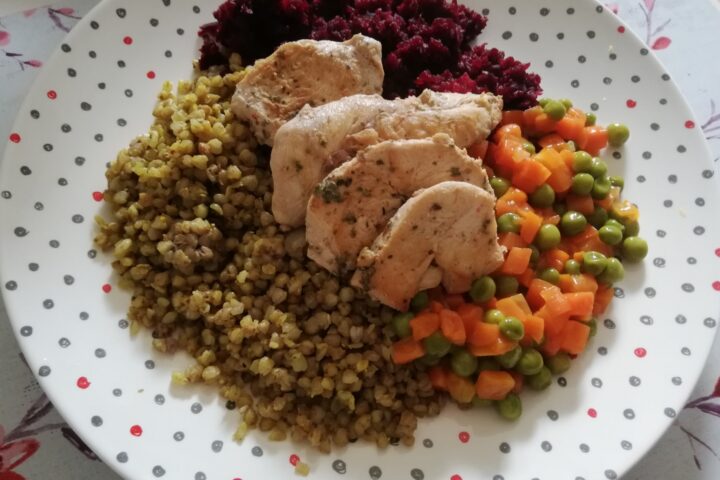 - Pierś kurczaka (mięso z bezpiecznego źródła, bez antybiotyków i hormonów) To bardzo ważne! Sklepowy kurczak jest tym nafaszerowany od góry do dołu! NIE PODAWAJ TEGO SWOJEMU DZIECKU!
