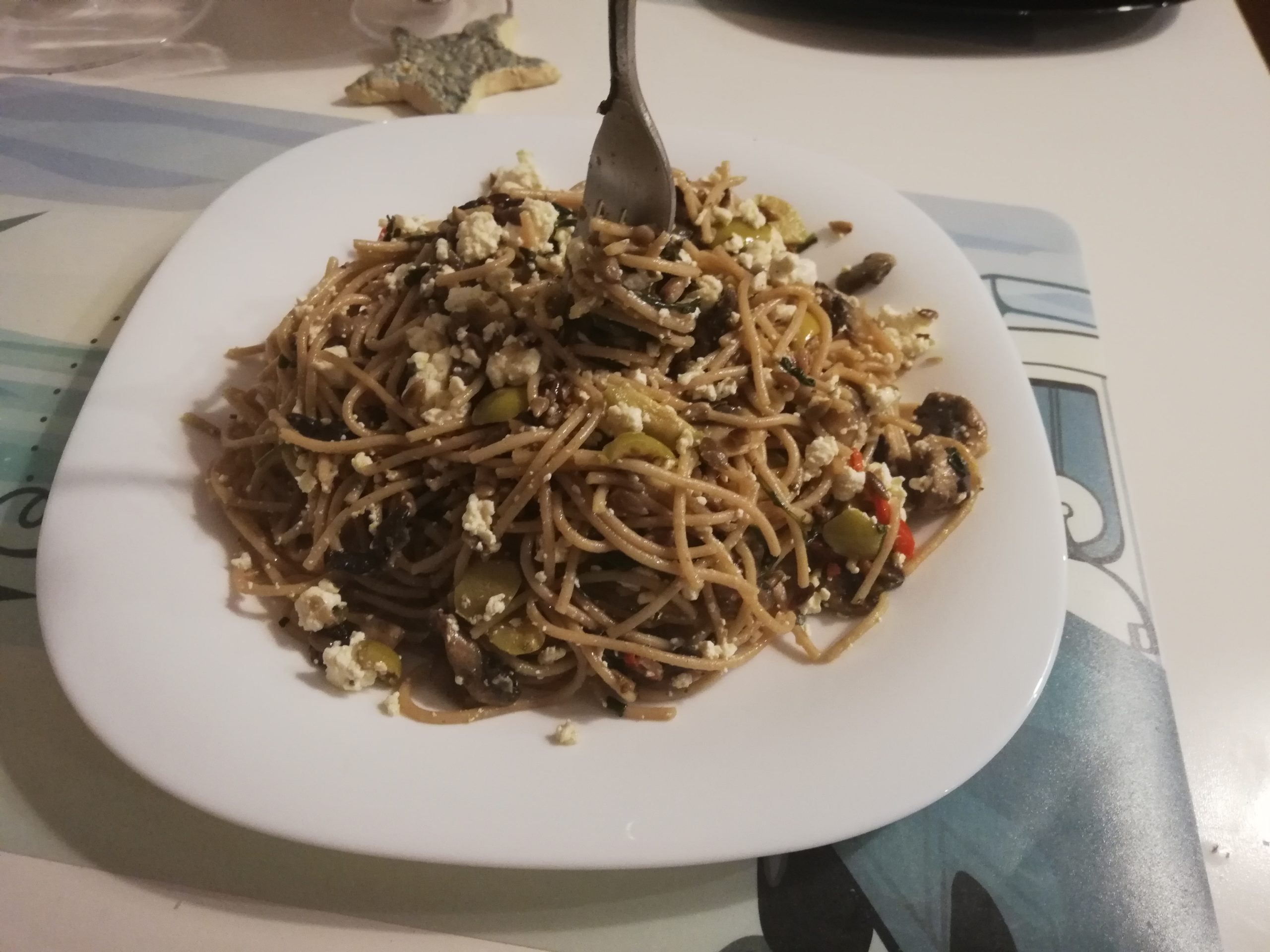 Z serii obiady bezmięsne ….Pyszne, sycące danie obiadowe 🙂 Makaron z pieczarką, szpinakiem i białym serem