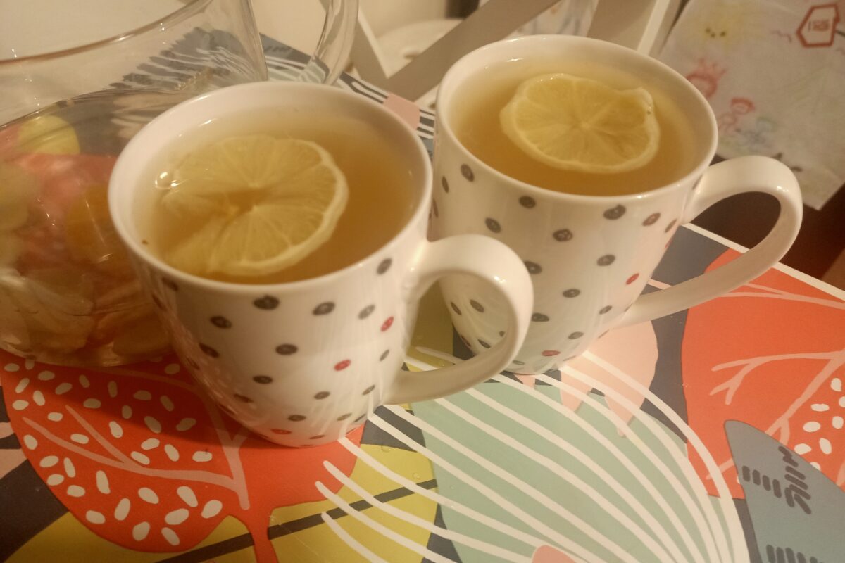 - Do ciepłej wody imbirowej, dodajemy sok z cytryny lub pokrojoną w plastry cytrynę, dodajemy łyżkę miodu, mieszamy.