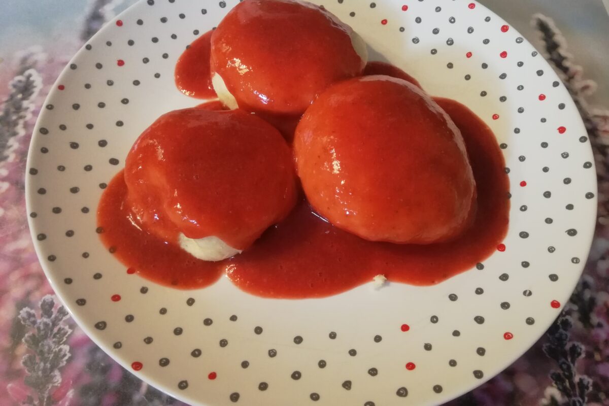 Pampuchy z sosem serowo – truskawkowym