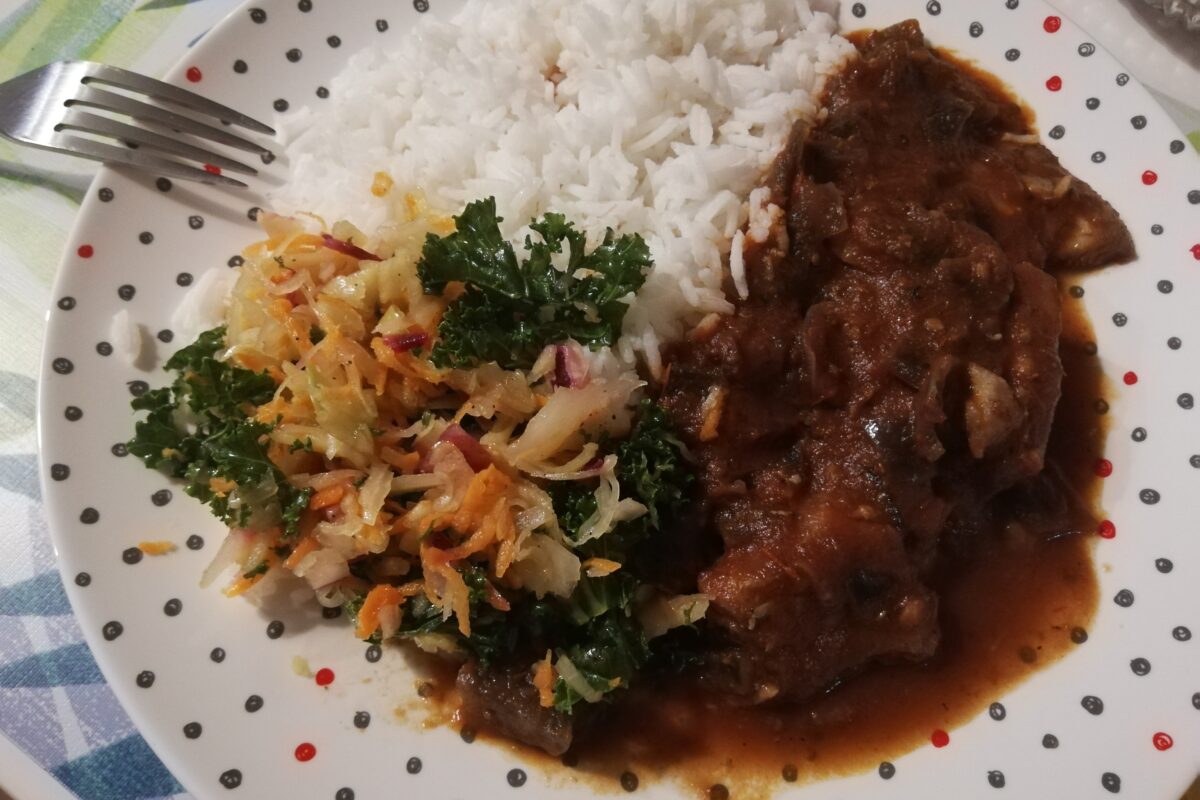• Podajemy z ryżem i ulubioną surówką 🙂 Ja polecam Ci surówkę z kiszonej kapusty z selerem lub surówkę Colesław z majonezem roślinnym.