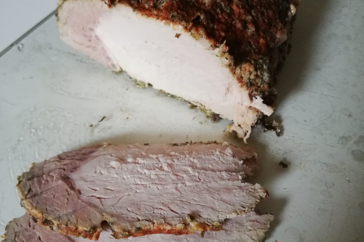 Schab jako dodatek do pieczywa, do sałatki, podany na ciepło do obiadu. Prosty sposób przygotowania, pyszny i aromatyczny… Jeśli oczywiście jadacie mięso 🙂 Ja jak wiecie, preferuje kuchnię wegetariańską, po prostu mi smakuje, jest bezpieczniejsza, jestem po nie zdrowsza i bardzo dobrze się czuję:) Czasami jednak mam ochotę na coś innego lub robię wędlinę domową dla dzieci, muszę wtedy oczywiście zadbać, aby mięso było z bezpiecznego źródła, tylko takie przygotuję moim dzieciom.
