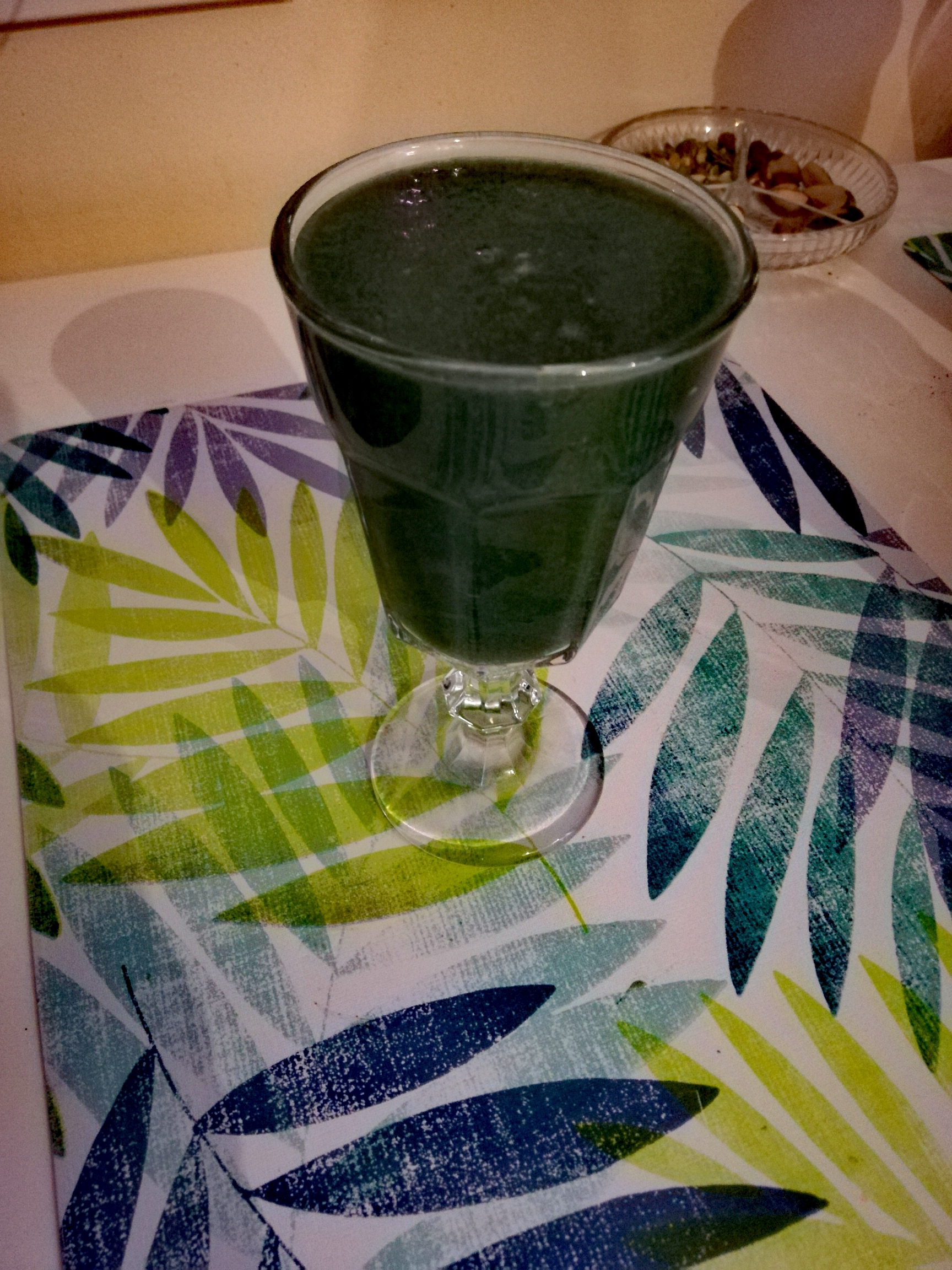 Ze składników wycisnąć sok, w wyciskarce wolnoobrotowej, dodać spirulinę, wymieszać…Pycha