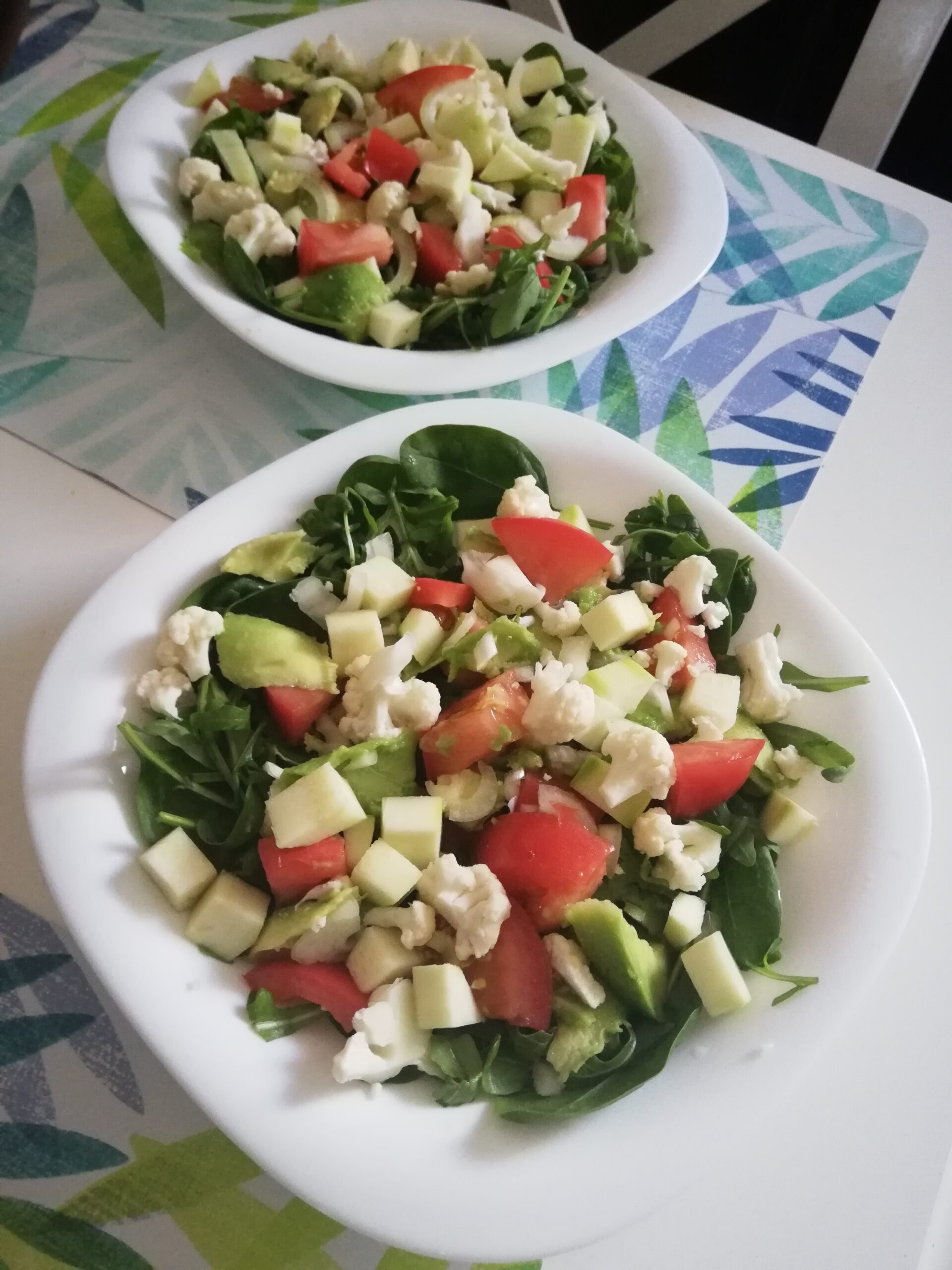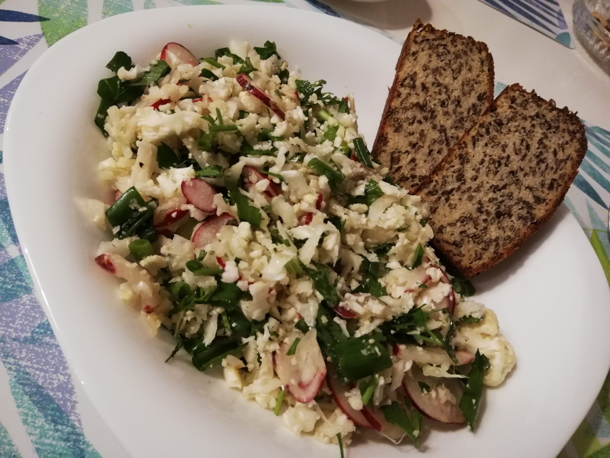 Surówka z kalafiora surowego z rzodkiewką z chlebkiem migdałowym