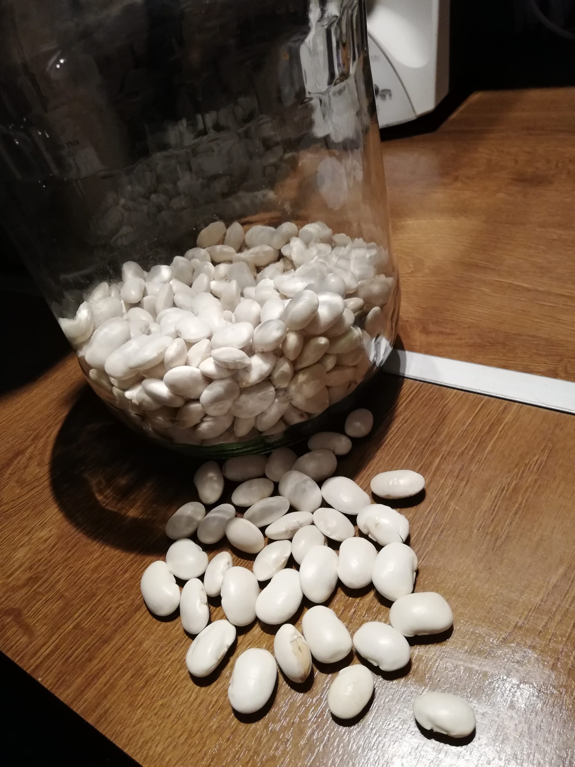 • Fasole należy przygotować dzień wcześniej.  Fasolę płuczemy, namaczamy w wodzie (1:3) na noc. Rano zlewamy wodę z fasoli, nalewamy świeżą wodę, około litr wody, i gotujemy do miękkości.