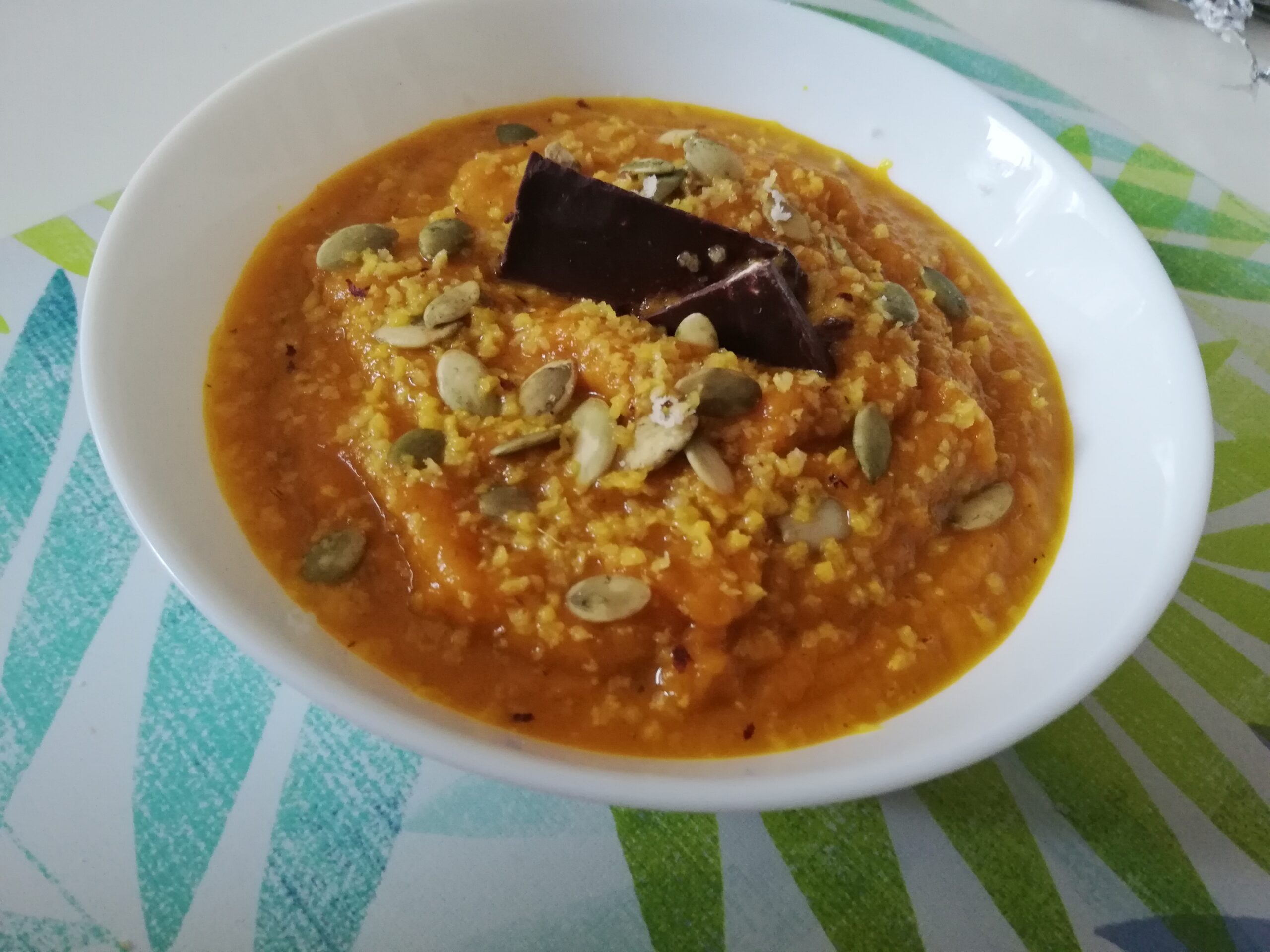 - Możemy również podać tą zupę w wersji na słodko, posypując zupę kawałkami gorzkiej czekolady i słonecznikiem lub wkładając do środka gorącej zupy kawałek gorzkiej czekolady… 😋 Pycha!