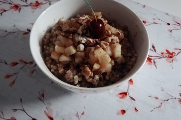 - Podajemy z plastrami gruszki 🍐 i oprószone cynamonem.