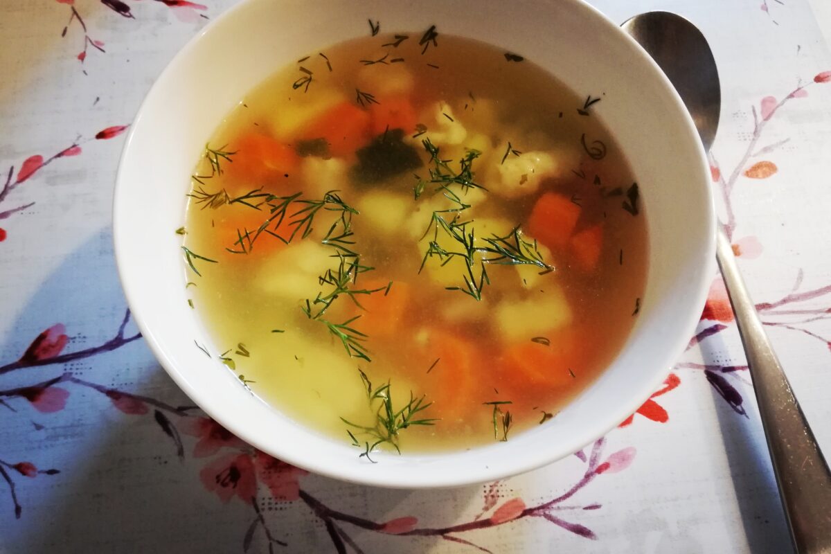 Zupa warzywna z lanymi (kładzionymi) kluskami